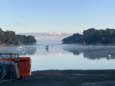 La vue sur la baie de Saint-Michel est splendide. Elle forme un arc de cercle exposé nord-ouest.